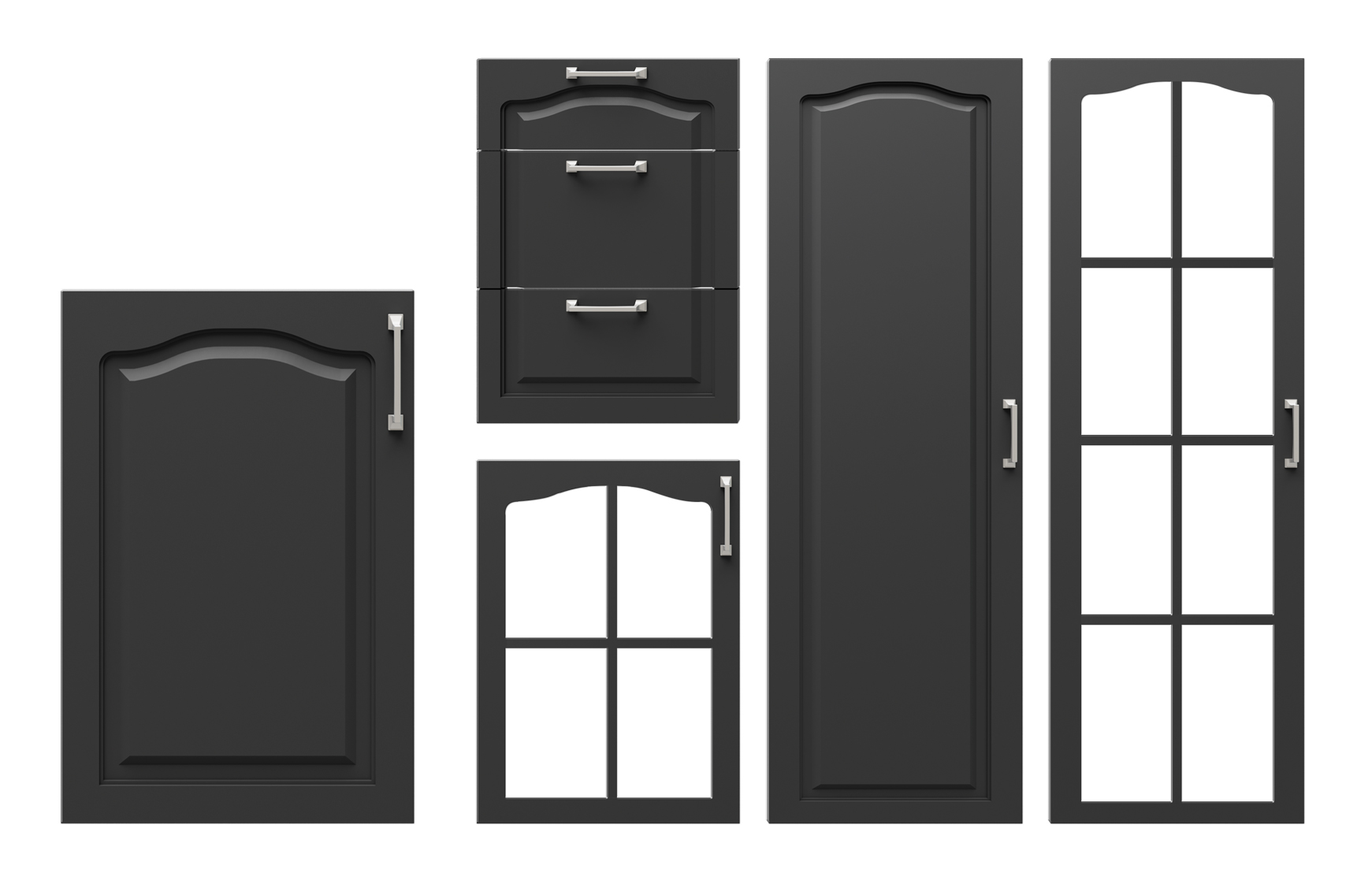 Kapak, çekmece, camlı kapak, boydan kapak ve boydan camlı kapak seçenekleri.