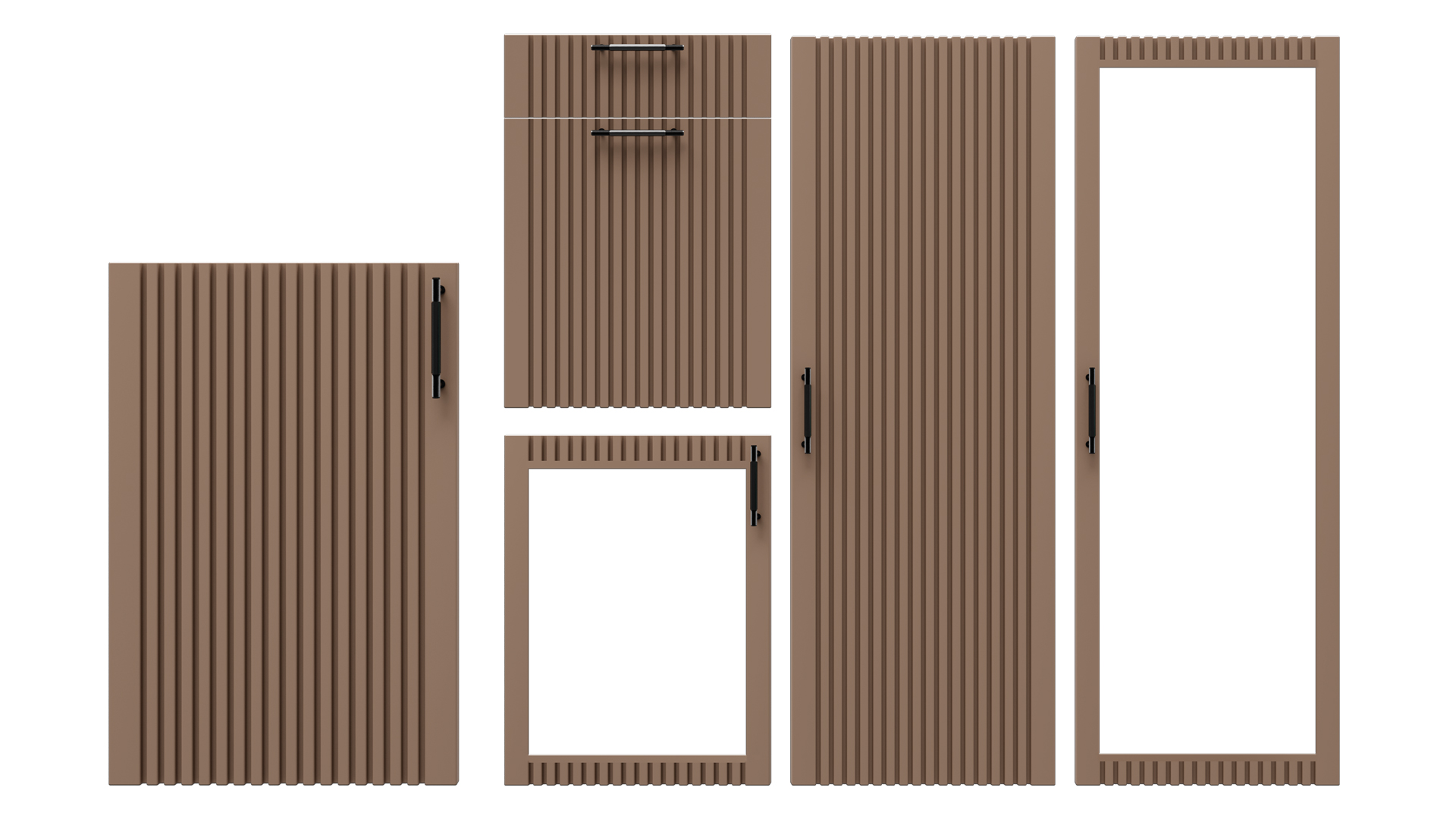 Kapak, çekmece, camlı kapak, boydan kapak ve boydan camlı kapak seçenekleri.