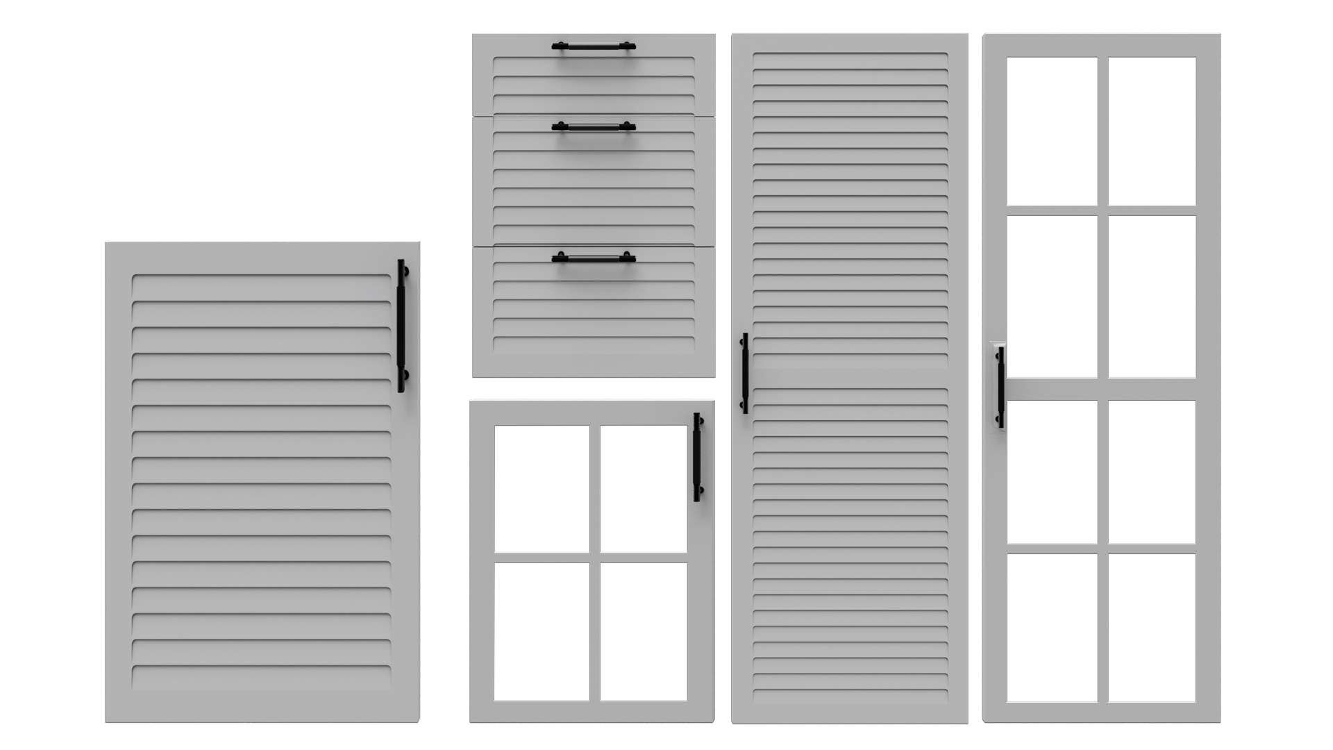 Kapak, çekmece, camlı kapak, boydan kapak ve boydan camlı kapak seçenekleri.
